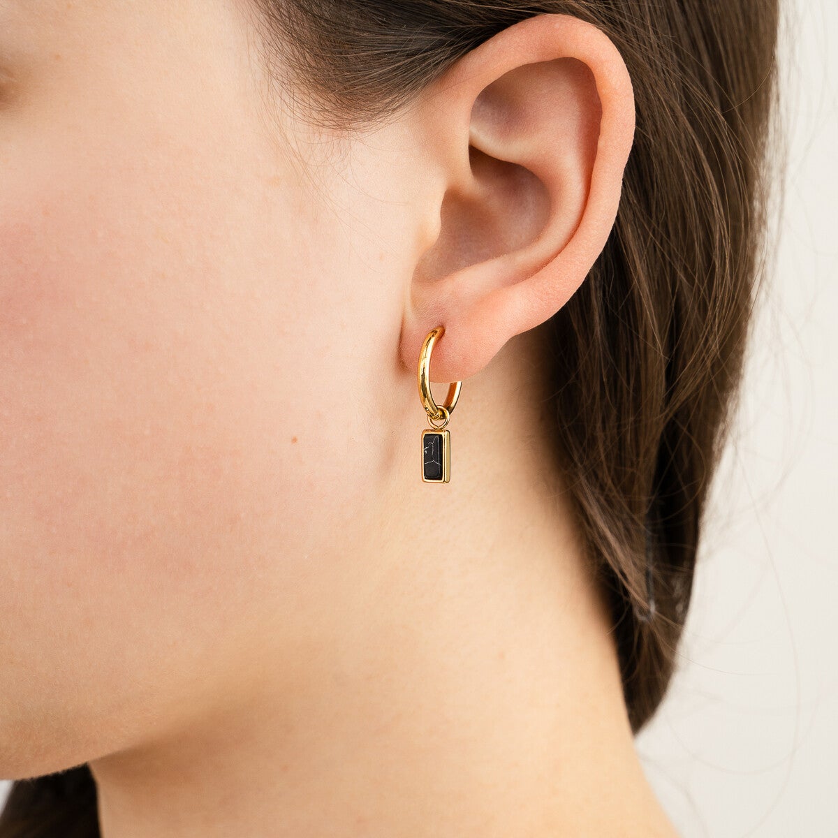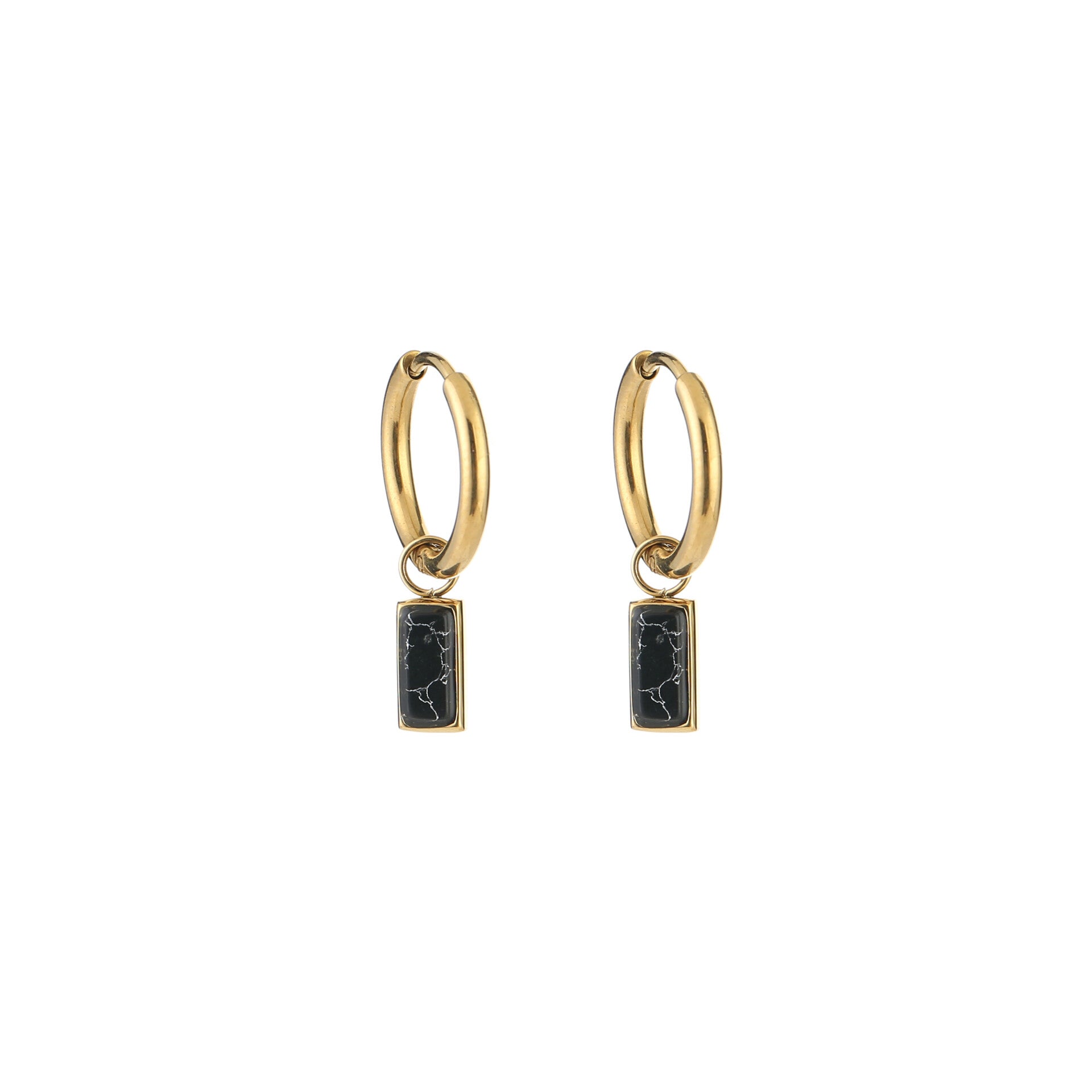 Hele mooie gouden oorbellen met een zwarte hanger. Deze oorbellen zijn gemaakt van roestvrij staal.