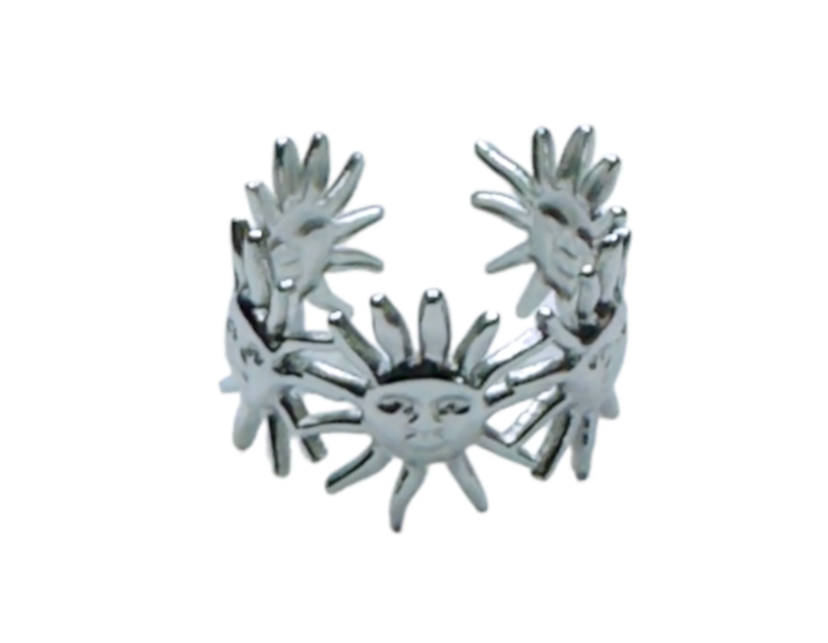 Hele leuke verstelbare ring met zonnetjes. Deze ring is gemaakt van roestvrij staal. Deze ring raden wij aan van maat 16 tot en met 19.