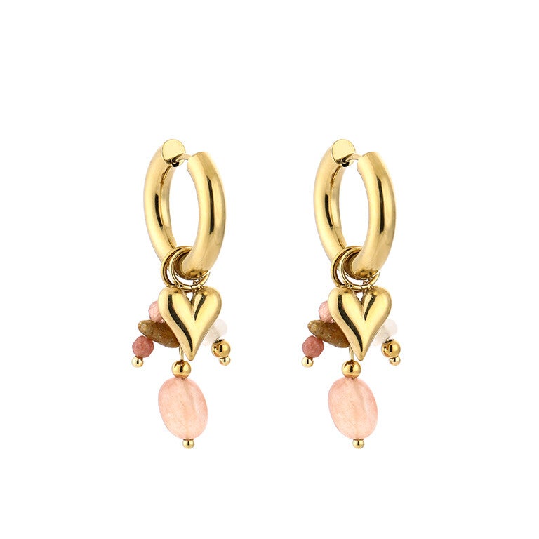 Hele leuke roestvrij stalen oorbellen met kraaltjes en een hartje. De oorbellen zijn ongeveer 4 cm lang en 1,3 cm breed.