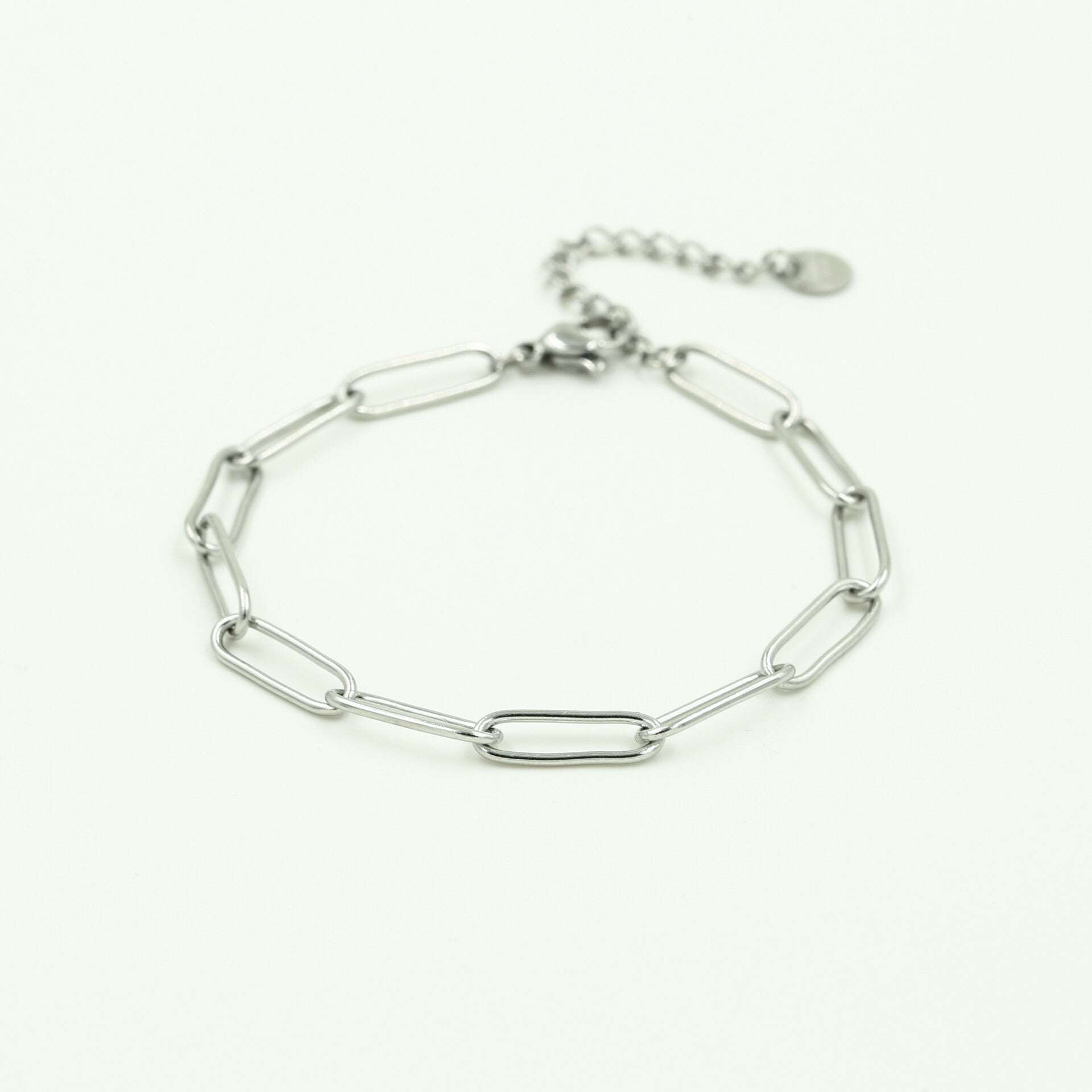 Hoe leuk is deze schakelarmband in het zilver. De armband is 16+3 cm en is gemaakt van roestvrij staal!